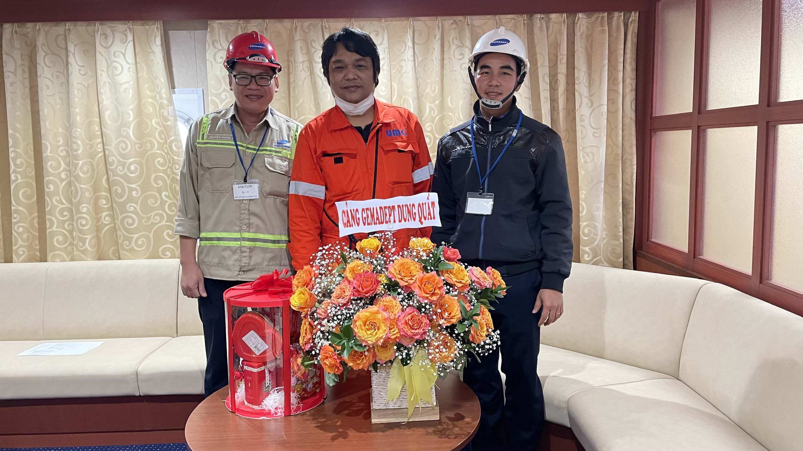 Nhân dịp Tết cổ truyền dân tộc và đầu năm Quý Mão, Ban lãnh đạo công ty Cảng Quốc tế Gemadept Dung Quất hân hạnh chào đón và gặp gỡ chúc tết cho thuyền viên, thuyền trưởng và hy vọng mong muốn có nhiều chuyến tàu mới và niềm vui mới đến với cảng trong năm 2023.