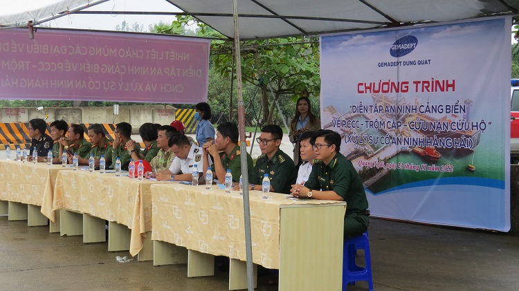 Đây là chương trình thường niên của Cảng Gemadept Dung Quất, phối hợp nhiều lực lượng thực hiện theo bộ luật quốc tế về an ninh tàu, bến cảng và bổ sung sửa đổi 2002 của SOLAS thông qua ngày 12/12/2000 và theo thông tư số 27/2011/TT-BGTVT ngày 14/4/2011 của Bộ Giao thông Vận tải. Buổi diễn tập nhằm nâng cao ý thức, sự sẵn sàng của lực lượng tại chỗ và sự phối hợp giữa các bên liên quan trong công tác đảm bảo an ninh cảng biển và PCCC.