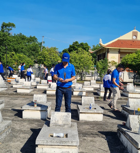 At the Martyrs' Cemetery in Binh Thuan commune, the employees of Gemadept Dung Quat Port paid their respects to the heroic martyrs who died for Vietnam's independence and freedom.