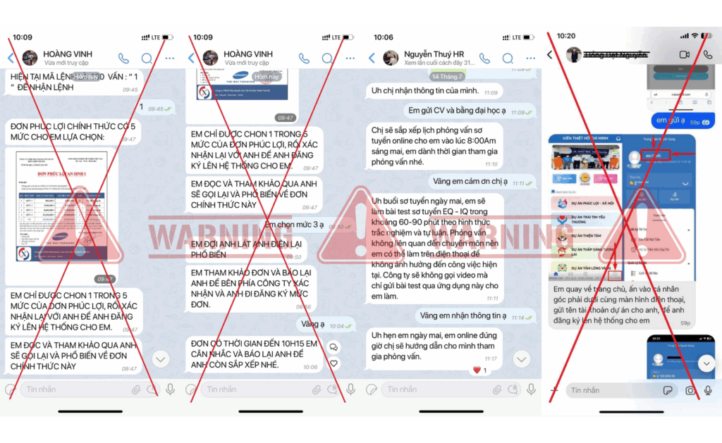 - Xây dựng Website giả (như “gemadeptcareers.com”) hứa hẹn việc làm nhưng thực chất là cạm bẫy.