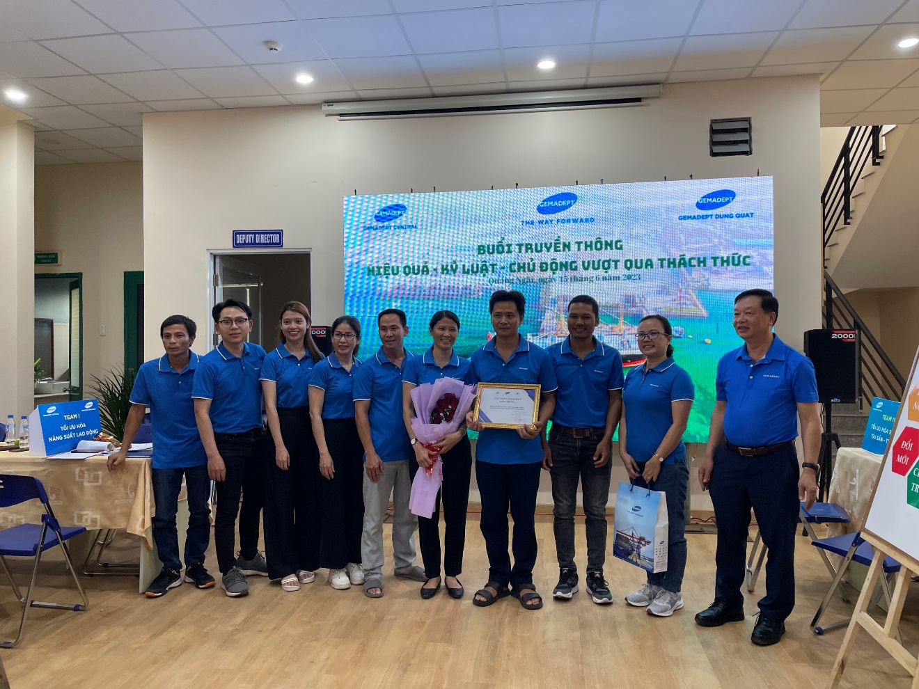 Vào 15/06/2023 vừa qua, tập đoàn Gemadept đã tổ chức buổi truyền thông đến cho anh, chị, em cảng Dung Quất và Gemadept Miền Trung nhằm nêu bật các giá trị cốt lõi và nguyên tắc văn hóa đã hình thành nên con người Gemadept cùng với việc nhận diện khó khăn và thực trạng sản xuất kinh doanh của đơn vị trong tình hình chung của tập đoàn. Thông qua đó đề xuất các giải pháp để hỗ trợ giải quyết các khó khăn thách thức mà anh, chị, em ở khu vực miền Trung của Tập đoàn đang phải đối mặt.